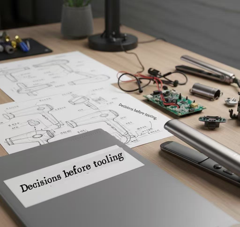 Some structural decisions in hair appliance development cannot be fully corrected after tooling.