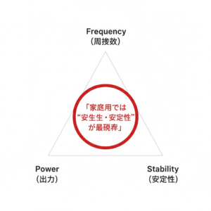 • 周波数や出力は高いほど良いと考えられがち